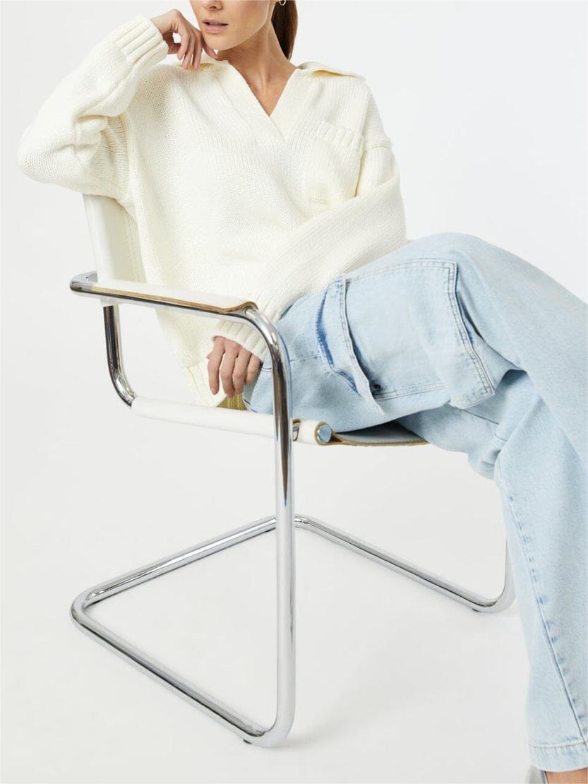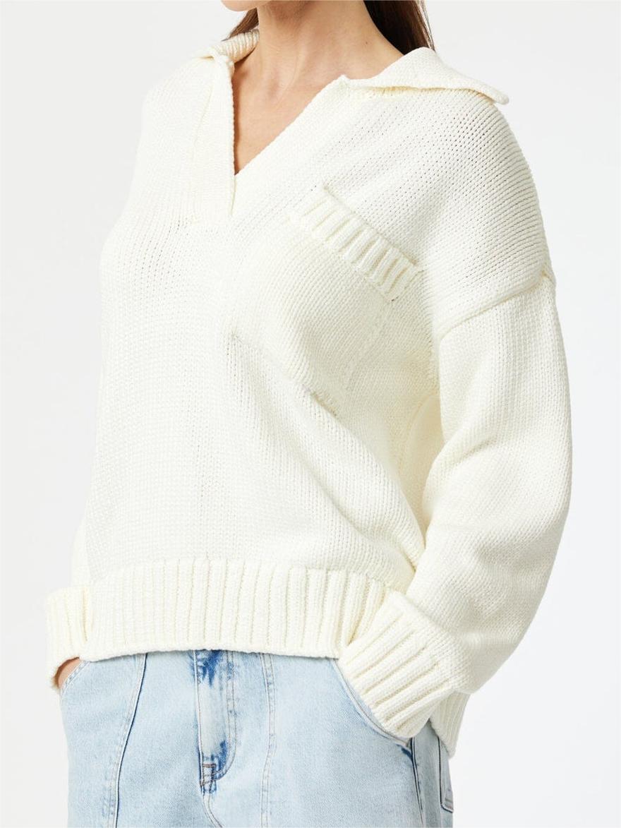 Casual White Polo Sweater 574114